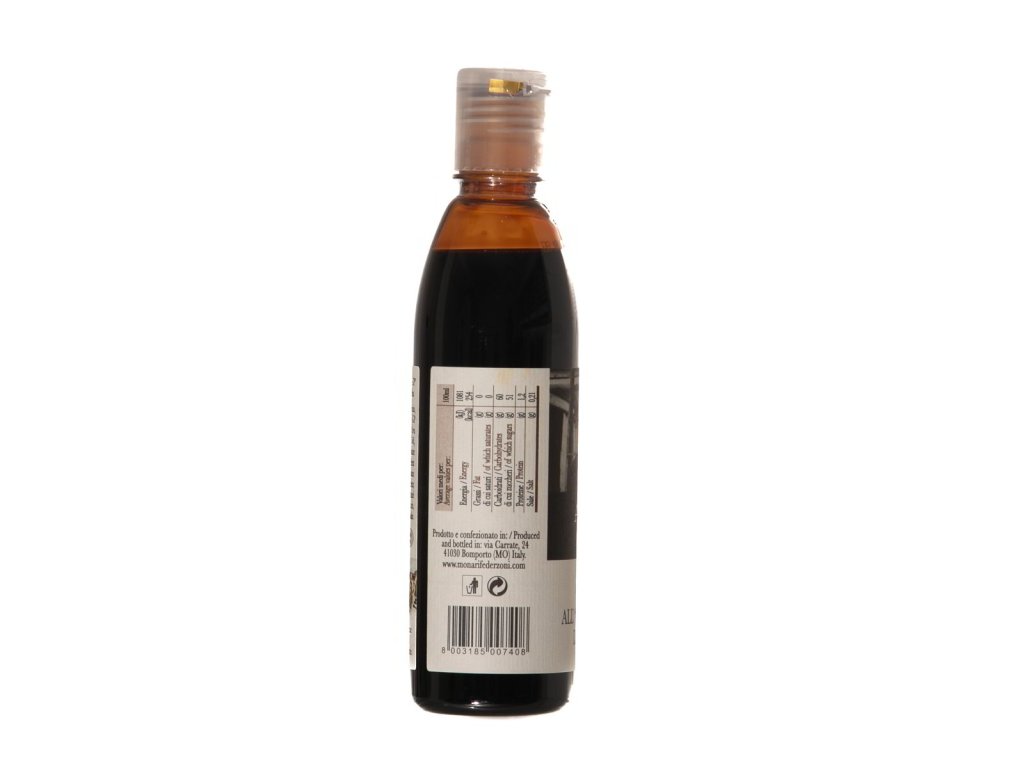 Produkt obsahuje koncentrovanú hroznovú šťavu, balzamikový ocot z Modeny IGP (35 %), ktorý sa skladá z vínneho octu a koncentrovaného muštu, farbivo E150d a modifikovaný kukuričný škrob. Obsahuje siričitany.