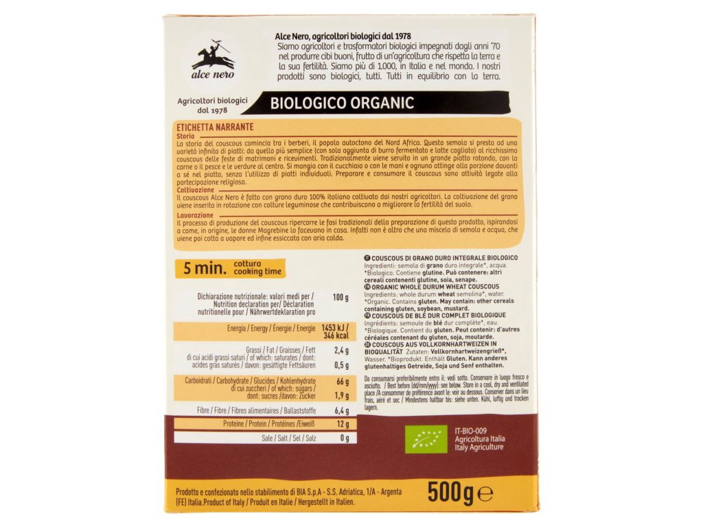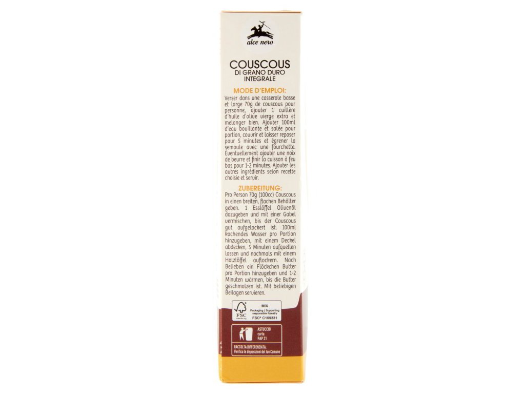 Alce nero bio kuskus z celozrnnej tvrdej pšenice 500g