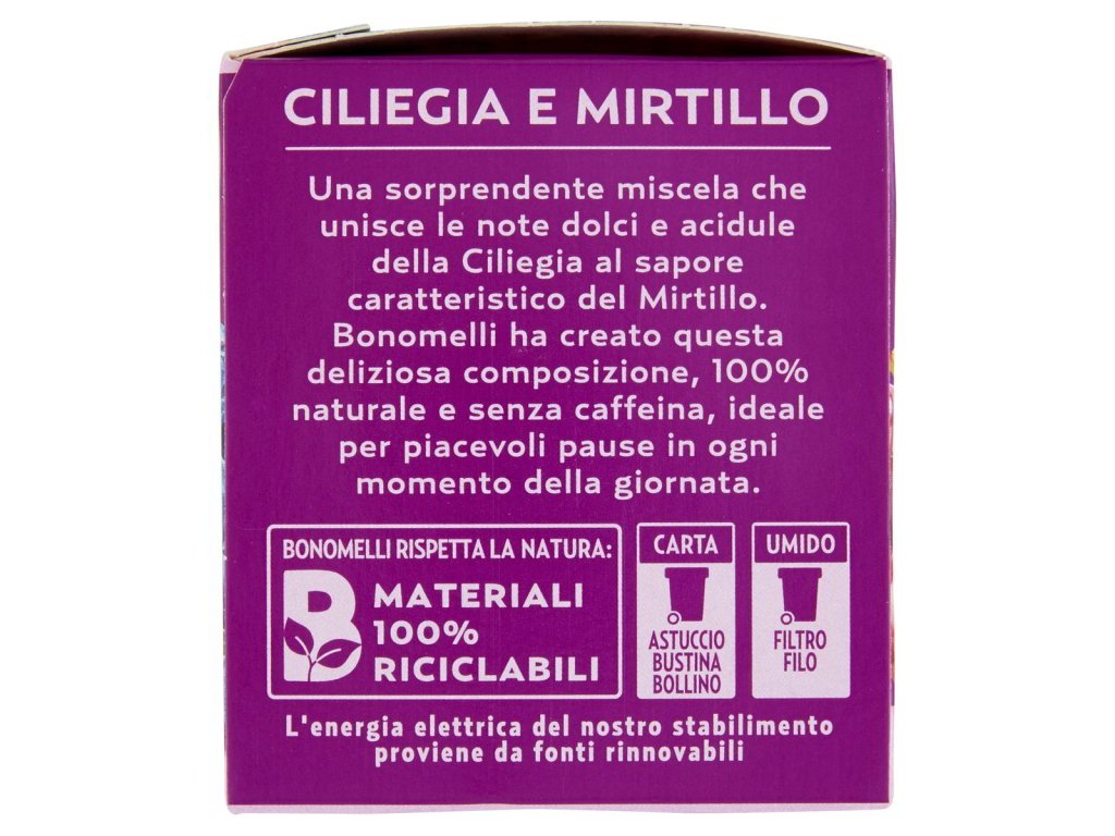 Kľúčové tagy: Bonomelli čaj, čerešňový čaj, čučoriedkový čaj, ovocný čaj, aromatizovaný čaj, ovocná kombinácia, osviežujúci čaj, zdravý čaj, prírodné zložky, čaj na každý deň, jemná chuť, čaj bez kofeínu, voňavý čaj, čaj na pohodu, čaj na osvieženie, lahodný čaj, ovocný mix, čaj s čerešňou, čučoriedkový zážitok, prírodná chuť
