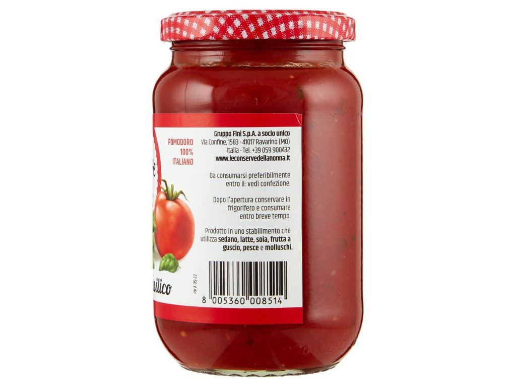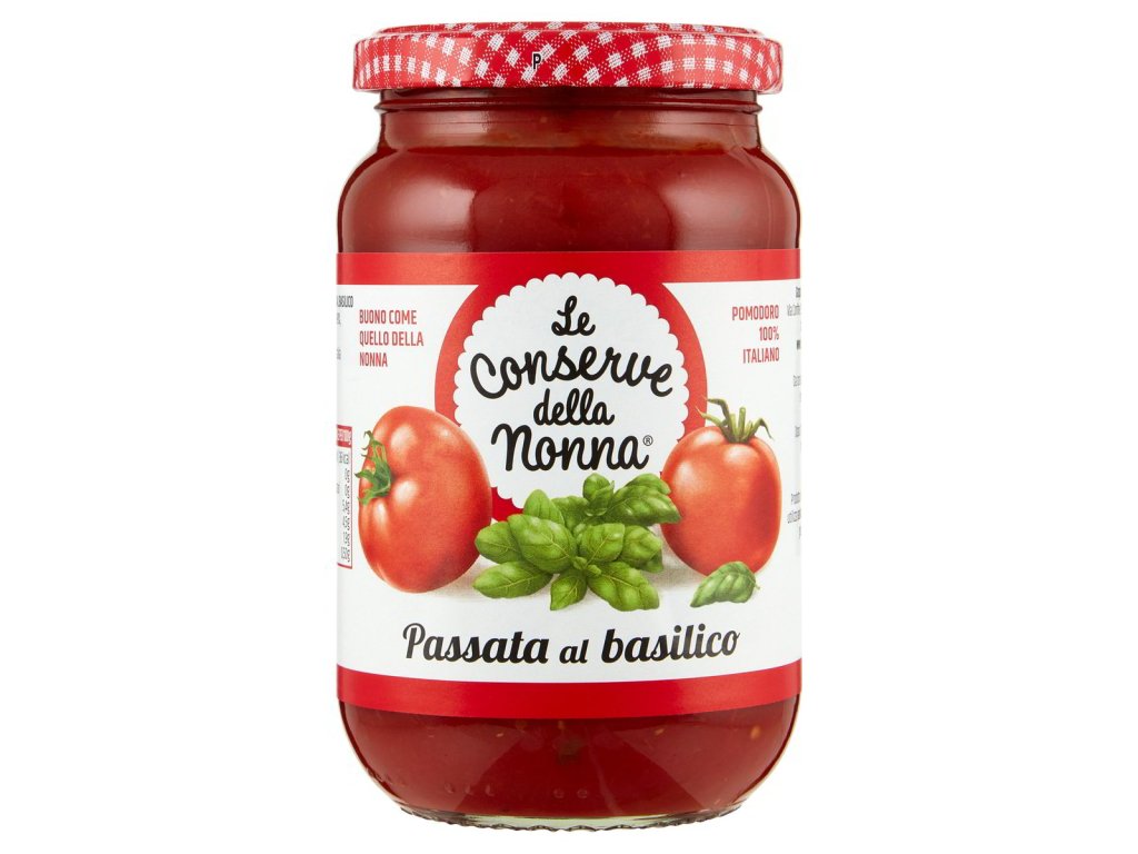 Kľúčové tagy: Conserve Della Nonna bazalkové paradajkové pyré, paradajkový pretlak, kvalitné paradajky, talianske paradajky, konzervované paradajky, gurmánske dochutenie, tradičné talianske produkty, výborné dochutenie, zdravé alternatívy, domáce varenie, jemná textúra, talianska kvalita, prírodné suroviny