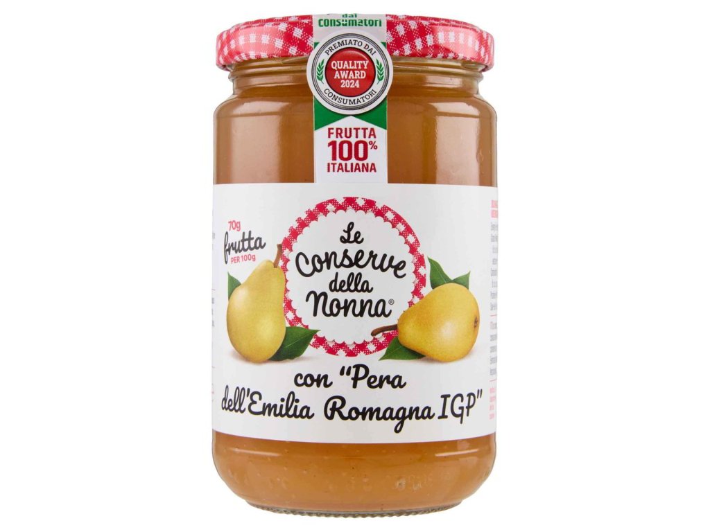 Kľúčové tagy: Conserve Della Nonna, hruškový džem, Emilia IGP, taliansky džem, ovocný džem, sladká pochutina, jemná chuť, kvalitný džem, sladká chuť, gurmánske džemy, jemné sladkosti, talianska kvalita, sladká maškrta, hrušková aróma, sladká pochúťka, ovocná konzistencia, hruškový zážitok, ovocný mix, prírodné sladidlo