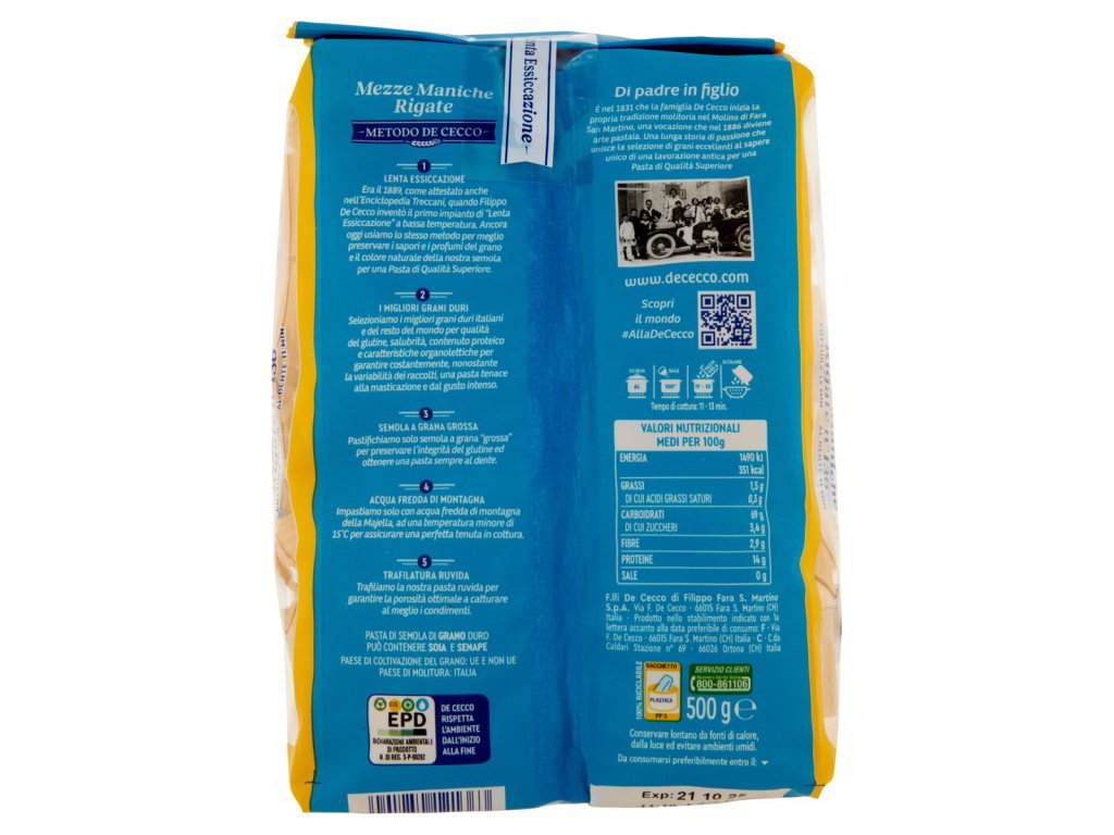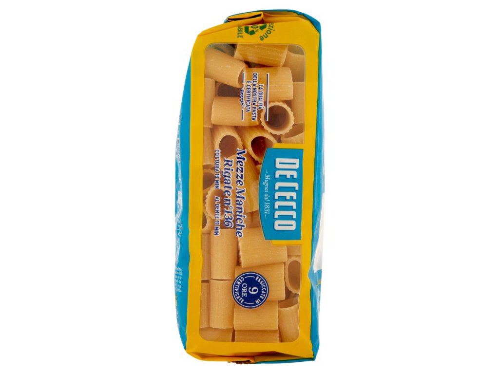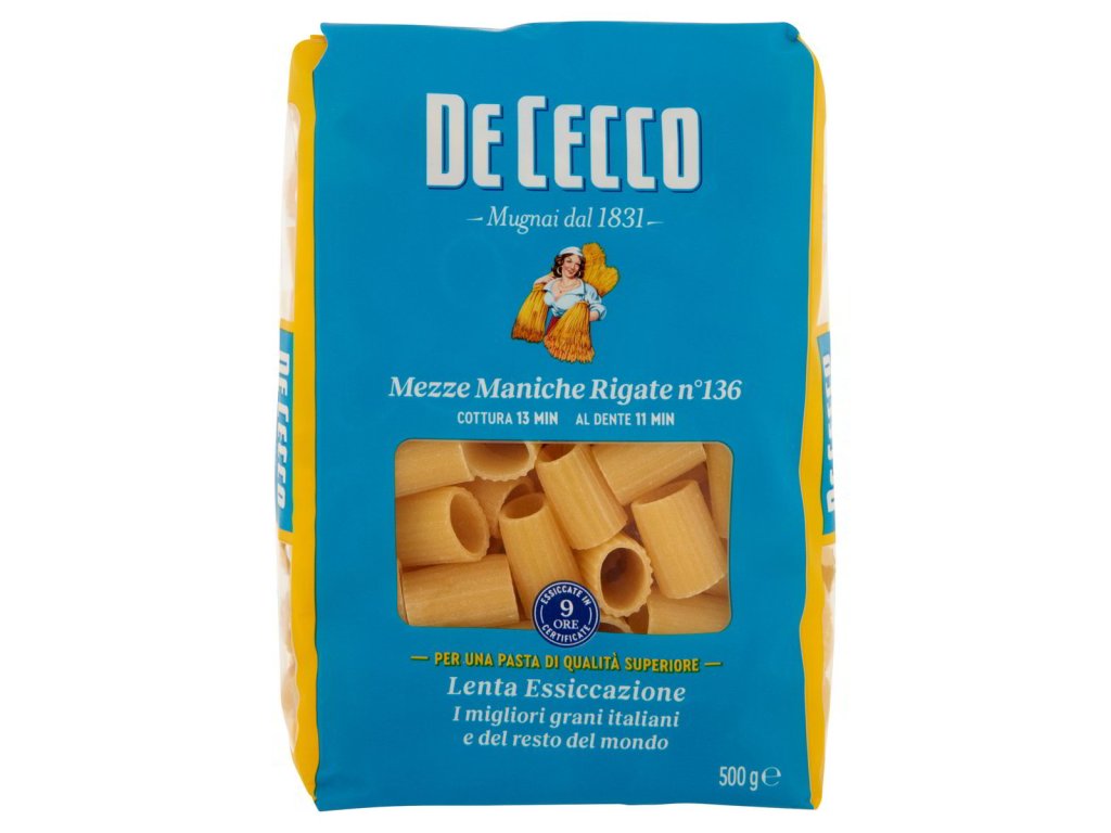 De Cecco Mezze Maniche Rigate °136 těstoviny 500 g