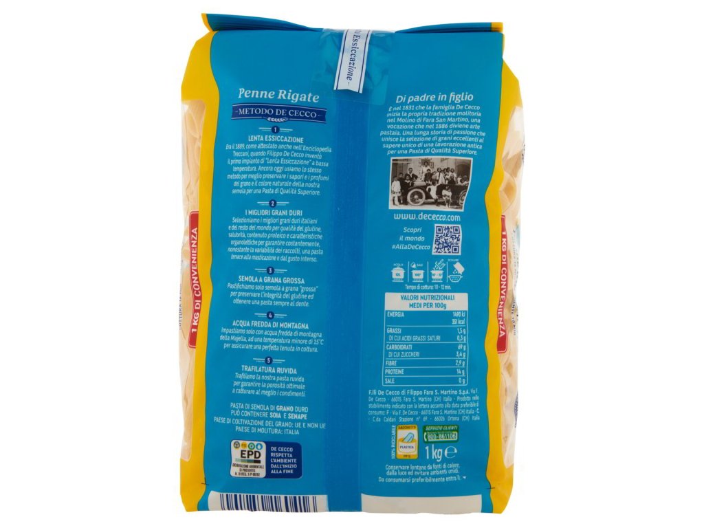 Těstoviny De Cecco Penne Rigate °41 1 kg