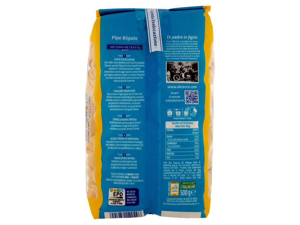 Těstoviny De Cecco Pipe Rigate °49 500 g