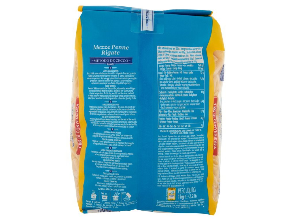 De Cecco Mezze Penne Rigate °141 těstoviny 1 kg