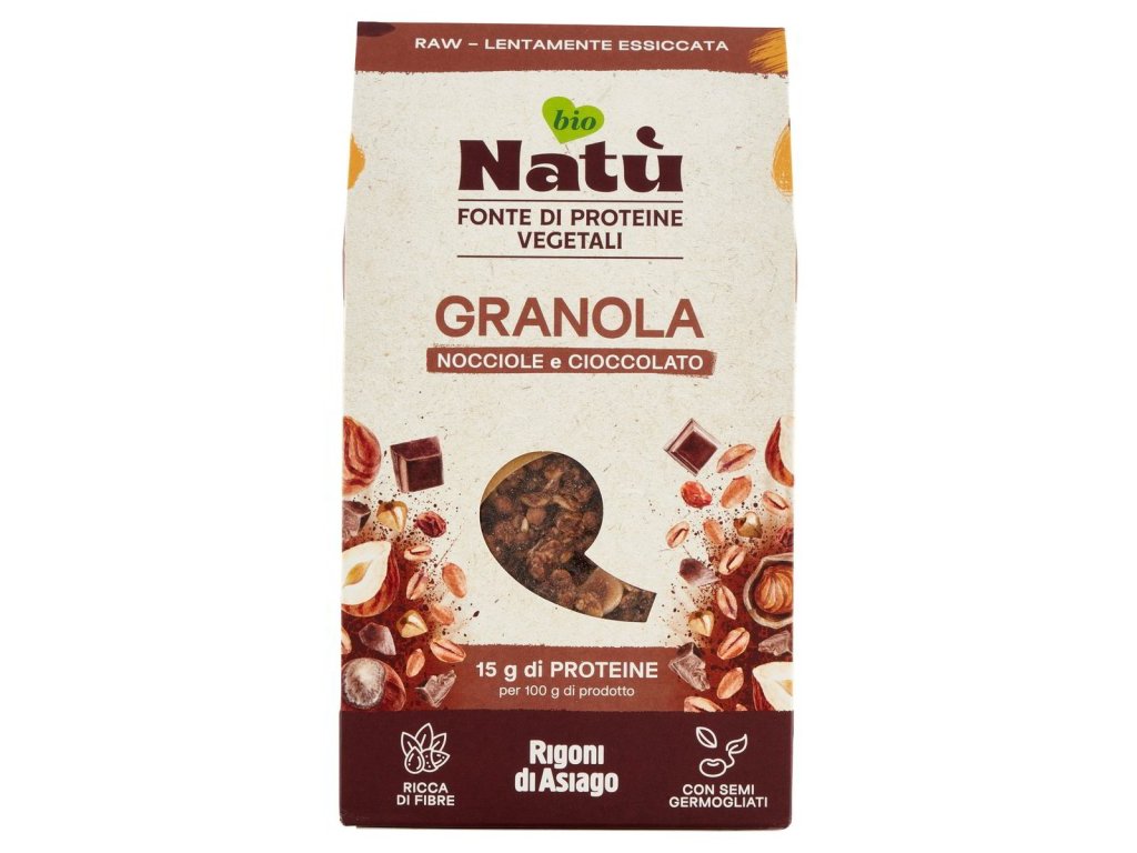 Rigoni di asiago bio proteinová granola s lískovými ořechy a čokoládou 250 g