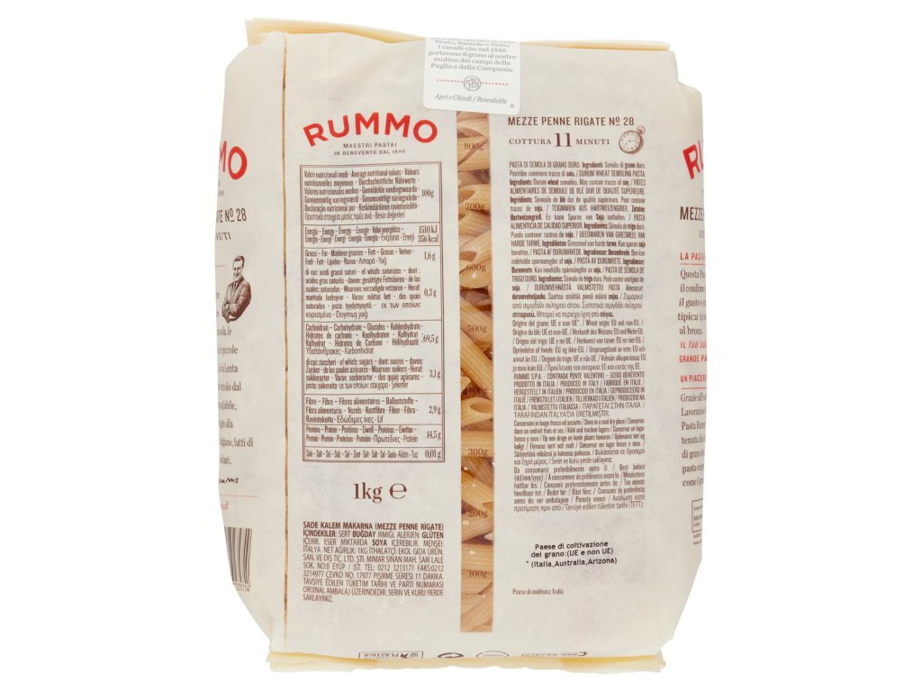 Rummo Mezze Penne Rigate °28 těstoviny 1 kg