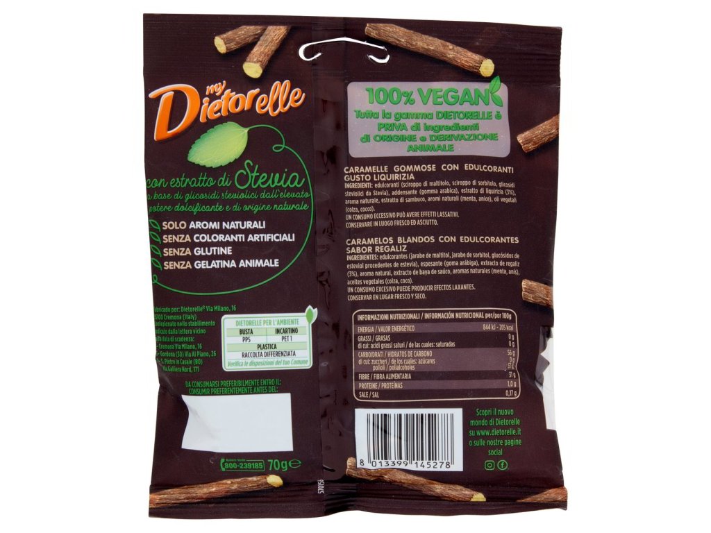 Kľúčové tagy: Dietorelle drievko, sladké drievko cukríky, bez cukru, zdravé cukríky, žuvacie cukríky, ovocné cukríky, bylinné dražé, talianske cukrovinky, zdravé sladkosti, Dietorelle produkty, sladké pochutiny, prírodné cukríky, sladké osvieženie, bezlepkové cukríky, drievkové dražé, zdravá maškrta, cukríky bez konzervantov, osviežujúce cukríky, jemné cukríky, Dietorelle sladkosti