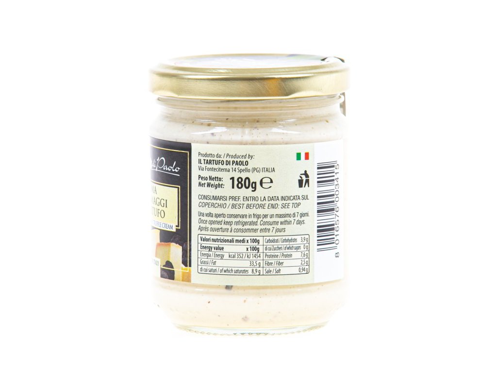 Ingrediencie: smotana, syr Asiago DOP, maslo, syr Fontina DOP, syr Taleggio DOP, syr Parmigiano Reggiano DOP, letná hľuzovka (Tuber aestivum Vitt) 4 %, biela hľuzovka (Tuber albidum Pico) 1 %, extra panenský olivový olej, citran sodný, kyselina mliečna, E472e, xantánová guma, sorban draselný, soľ, čierne korenie, arómy, prírodné arómy hľuzovky.