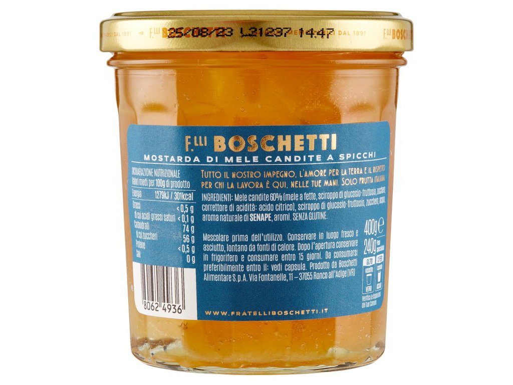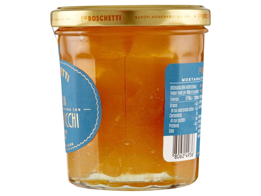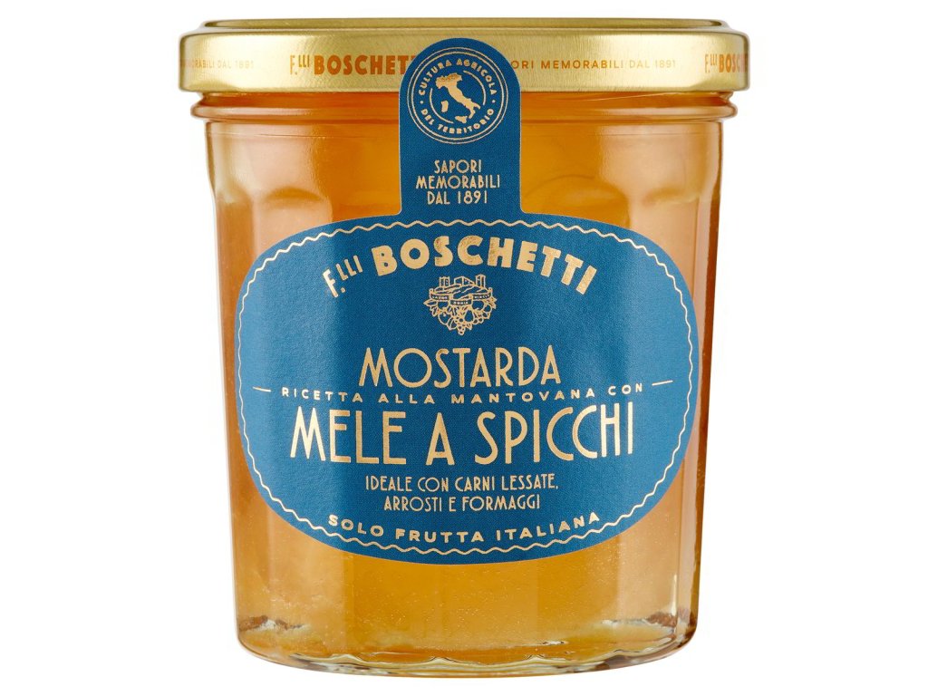 Kľúčové tagy: jablká mostarda Mantova, talianska delikatesa, tradičná mostarda, ovocná mostarda, jemná konzistencia, gurmánske dochutenie, výnimočné ingrediencie, talianska kuchyňa, exkluzívna pochúťka, klasická talianska chuť, jemne pikantná chuť, zdravé dochutenie, jemná aróma, kvalitné dochutenie, výnimočné recepty, lahodná mostarda, jablková chuť, kvalitné suroviny, talianske dochutenie, jemná sladkokyslá chuť