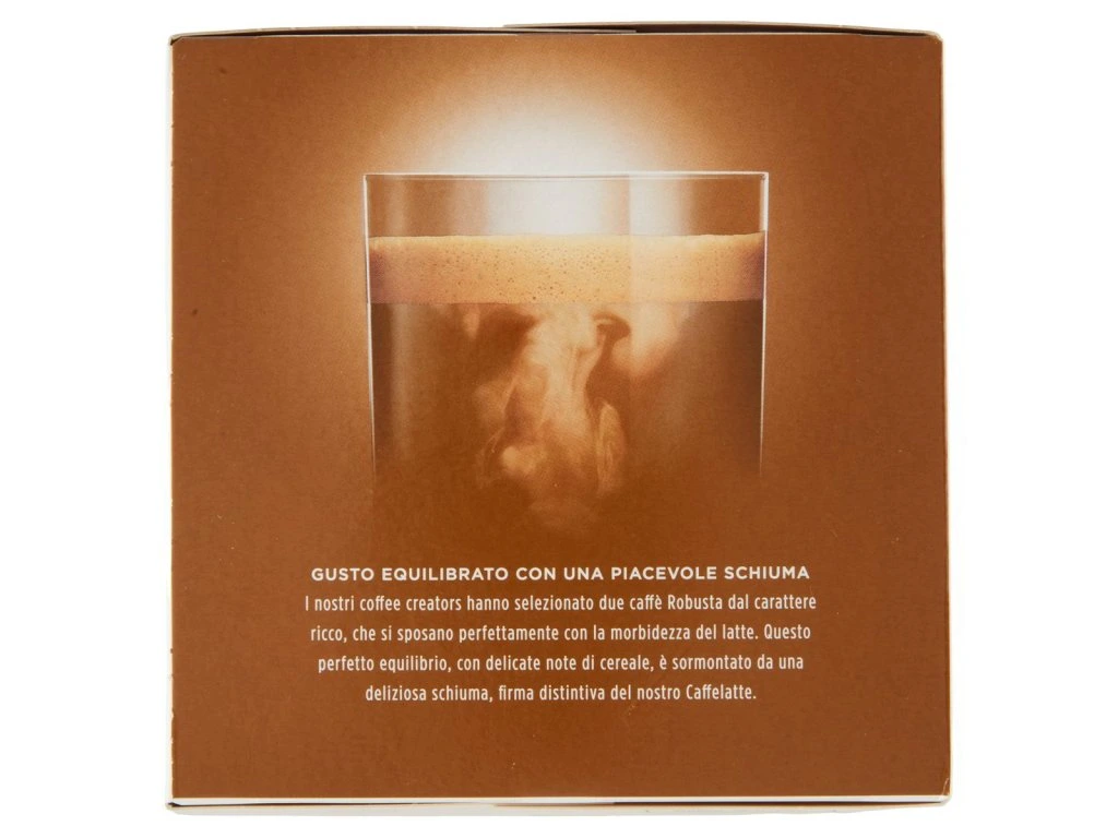 NESCAFÉ Dolce Gusto Caffellatte prináša do vašej domácnosti autentický taliansky zážitok z kávy s mliekom v podobe praktických kapsúl. Tento obľúbený nápoj kombinuje intenzívnu espresso kávu s jemnou mliečnou penou, ktorá vytvára dokonale vyváženú chuť. Balenie obsahuje 16 kapsúl – 8 kapsúl s kvalitnou praženou kávou a 8 kapsúl s mliečnou zložkou, ktoré spoločne vytvárajú nápoj v štýle talianskych kaviarní.