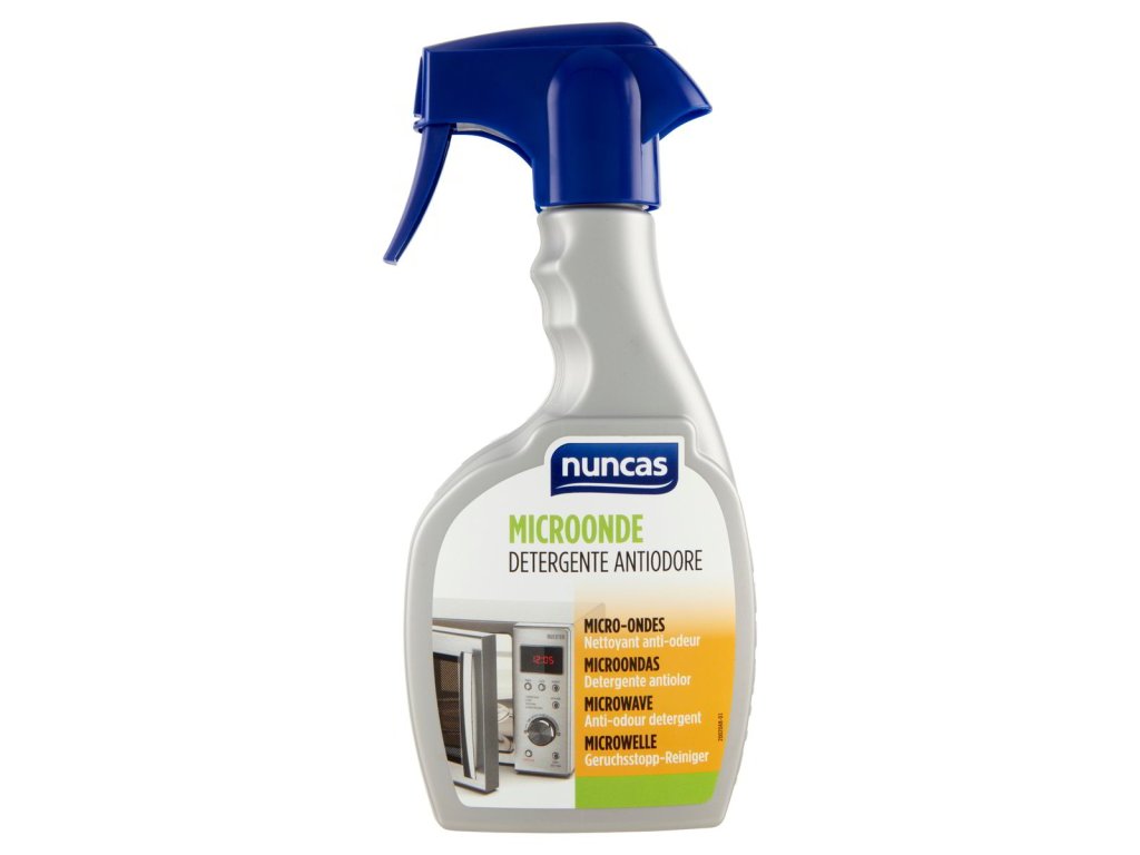 Nuncas Microonde je špeciálny čistiaci prostriedok určený na rýchle a dôkladné odstránenie nečistôt z mikrovlnných rúr, vrátane ťažko dostupných miest. Jeho silné odmasťovacie účinky pomáhajú zabrániť bakteriálnej kontaminácii. Produkt neobsahuje parfumy a nevytvára penu, čím je bezpečný na použitie vo vnútri spotrebičov. Aplikácia: pred použitím pretrepať, nastriekať na vlhkú špongiu a vyčistiť vnútorné aj vonkajšie povrchy mikrovlnky. Nechať pôsobiť niekoľko minút a následne opláchnuť.