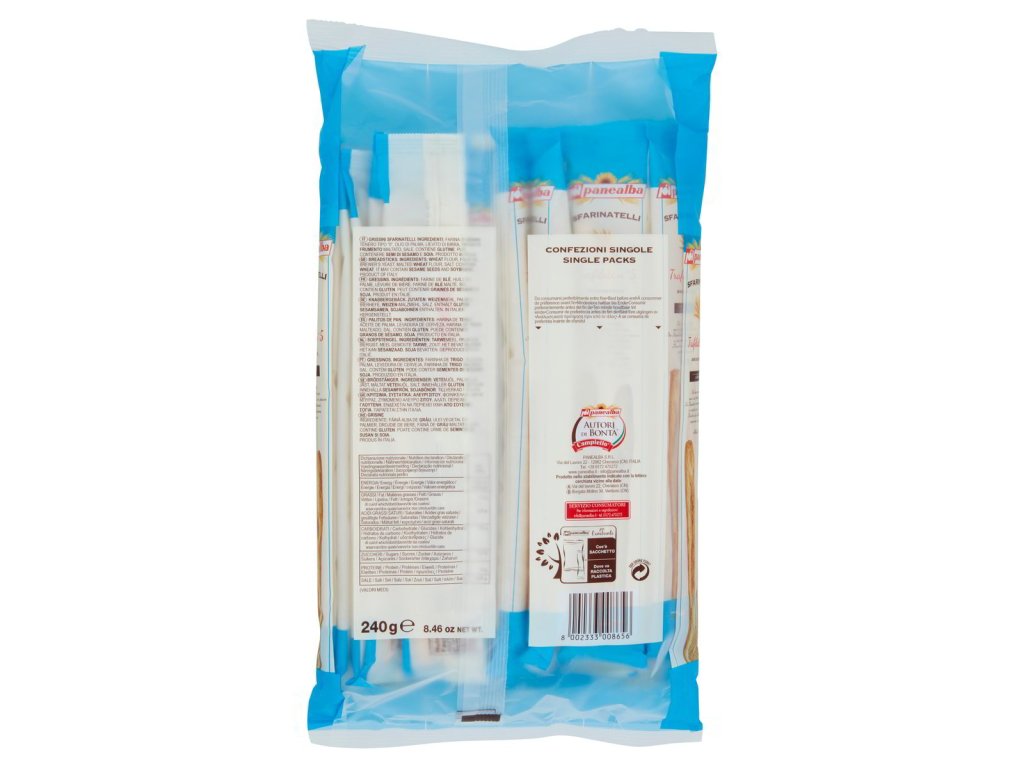 Zloženie: pšeničná múka typu „0“, palmový olej, pivovarské droždie, sladový jačmenný extrakt, soľ. Obsahuje glutén. Môže obsahovať sezamové semienka a sóju.