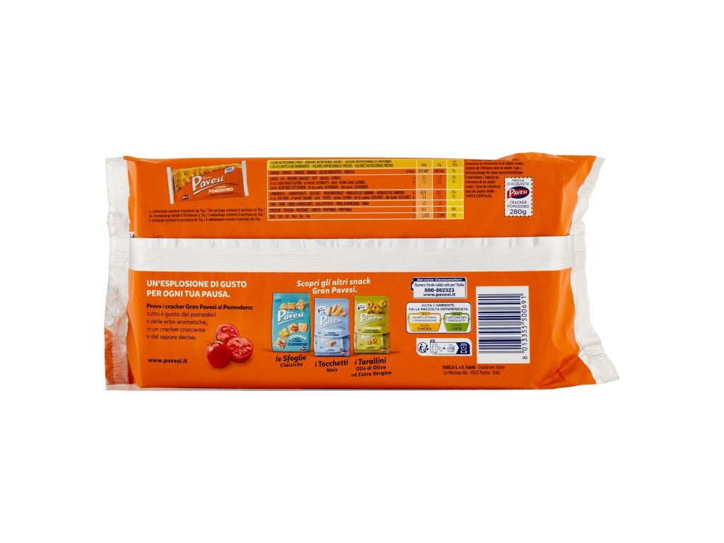 Kľúčové tagy: Pavesi tomatový kracker, paradajkové krekry, chrumkavé sušienky, zdravé občerstvenie, Pavesi produkty, lahodné krekry, slané snacky, tradičné talianske krekry, jemná paradajková príchuť, zdravá alternatíva, výživný snack, chutné krekry, lahodné pečivo, bez konzervantov, kvalitné suroviny, pečivo na cestu, výživné občerstvenie, chrumkavé občerstvenie, zdravá pochúťka, jemné pečivo