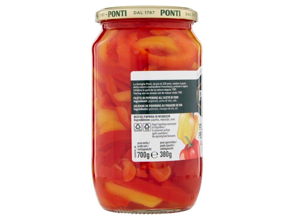 Ponti krájané papriky s vinným octom 700 g