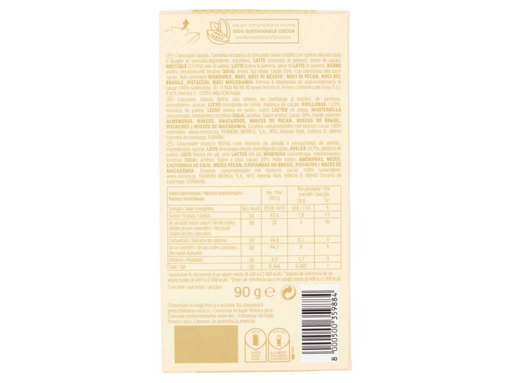 Ferrero Rocher jemná biela čokoláda s celými lieskovými orieškami 90g