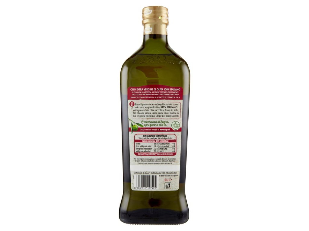 Kľúčové tagy: Sagra E.V.Oil, extra panenský olivový olej, kvalitný olivový olej, 100% taliansky olej, prírodné suroviny, zdravé tuky, jemná chuť, výživné varenie, autentická talianska chuť, gurmánske oleje, výborné dochutenie, talianske produkty, zdravé varenie, výborné talianske dochucovadlá, tradičné talianske dochutenie, zdravá výživa, jemná textúra, kvalitné talianske produkty, výborné talianske oleje, prémiový olivový olej
