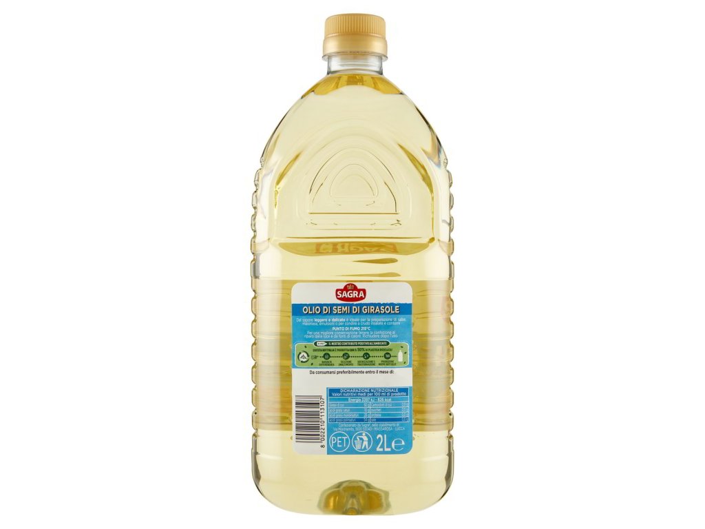 Kľúčové tagy: Sagra slnečnicový olej, rastlinný olej, kvalitný kuchynský olej, slnečnicový tuk, výborné na varenie, jemná chuť oleja, zdravé tuky, výživný olej, výdatné tuky, taliansky kuchynský olej, gurmánske dochutenie, prírodné dochutenie, prémiová kvalita, zdravé dochutenie, autentická chuť, tradičný kuchynský olej, luxusné dochutenie, olej na pečenie, výborné na fritovanie, kvalitný rastlinný olej