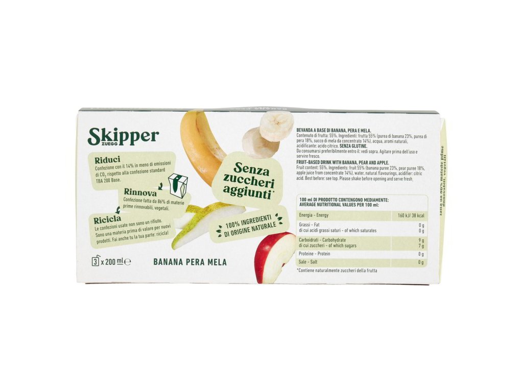 Kľúčové tagy: Skipper, banánová šťava, hrušková šťava, jablková šťava, bez pridaného cukru, ovocný mix, zdravý nápoj, intenzívna aróma, svieža chuť, prírodná šťava, bez umelých prísad, kvalitné zložky, jemná vôňa, osviežujúci efekt, praktické balenie, tehličkové balenie, zdravý životný štýl, hydratácia, prírodná aróma